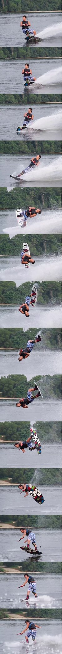 Firstly, try surfing the wake a little and get a feel of how the line tension builds up each time you cut away from the wake. When you’re ready to hit it, cut away from the wake digging your heels to built up more tension and when you feel that the line tension is at its strongest just cut up and away like you would on a normal roll to revert, but really focus on keeping you handle low so that its easier to spin around it. The landings pretty much the same as a roll to revert just with a little more slack in the line after landing it.